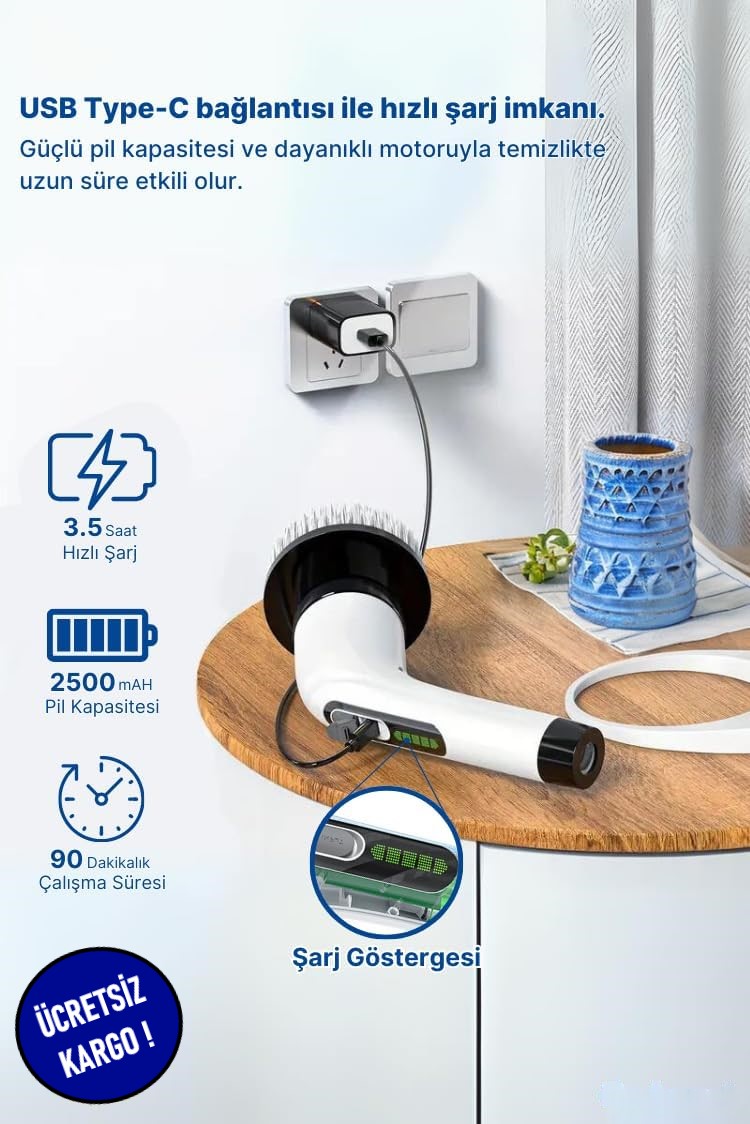 1 Adet ELEKTRİKLİ TEMİZLİK FIRÇASI -